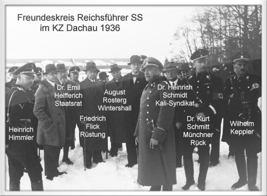 Rosterg war seit 1932 Mitglied im Keppler-Kreis, der nach 1933 zum „Freundeskreis Reichsführer SS" umbenannt wurde, hier 1936 in Dachau, Quelle: KZ-Gedenkstätte Dachau