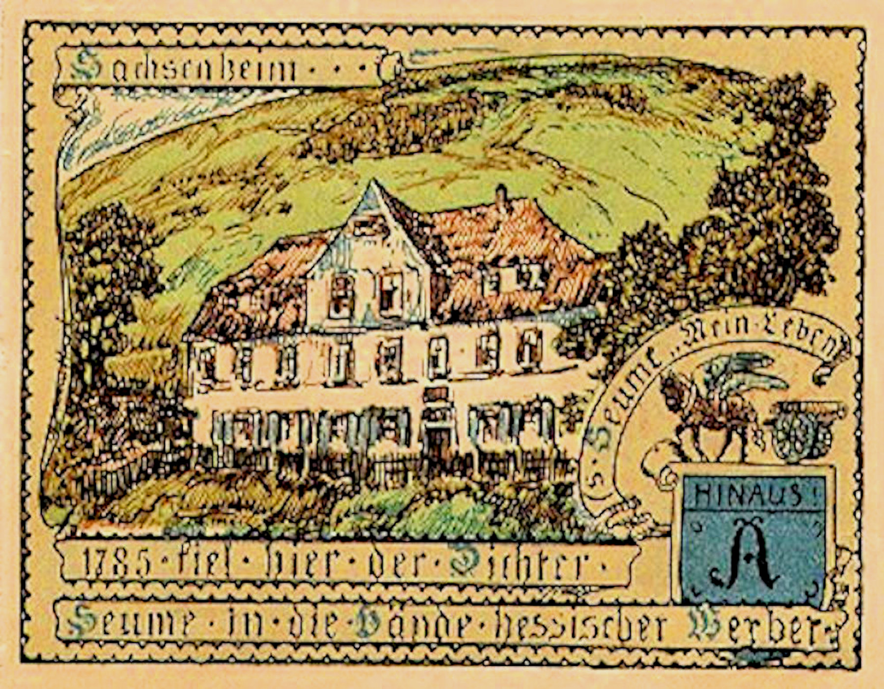Die Mutter suchte ihn mit Hilfe einer Zeitungsanzeige im Juli, als der Sohn schon, von hessischen Werbern im „Gasthaus zum Sachsenheim“ in Vacha/Philippsthal aufgegriffen, mit Schicksalsgenossen in der Festung Ziegenhain auf den Abtransport nach Amerika wartete. Die Weserböcke brachten die Soldaten nach Bremen. Das Seeschiff war dann 22 Wochen bis Halifax unterwegs, wo es Ende September eintraf. Ende Februar 1776 war bereits das größte Kontingent hessischer Soldaten nach Amerika gegangen. Der Nachschub 1782 wurde nicht mehr eingesetzt. Seume wurde nicht zum Offizier befördert, er verbrachte seine Tage mit Offizieren im Lager und auf der Jagd. 1783 wurde Friede geschlossen, die USA wurden von England anerkannt.
